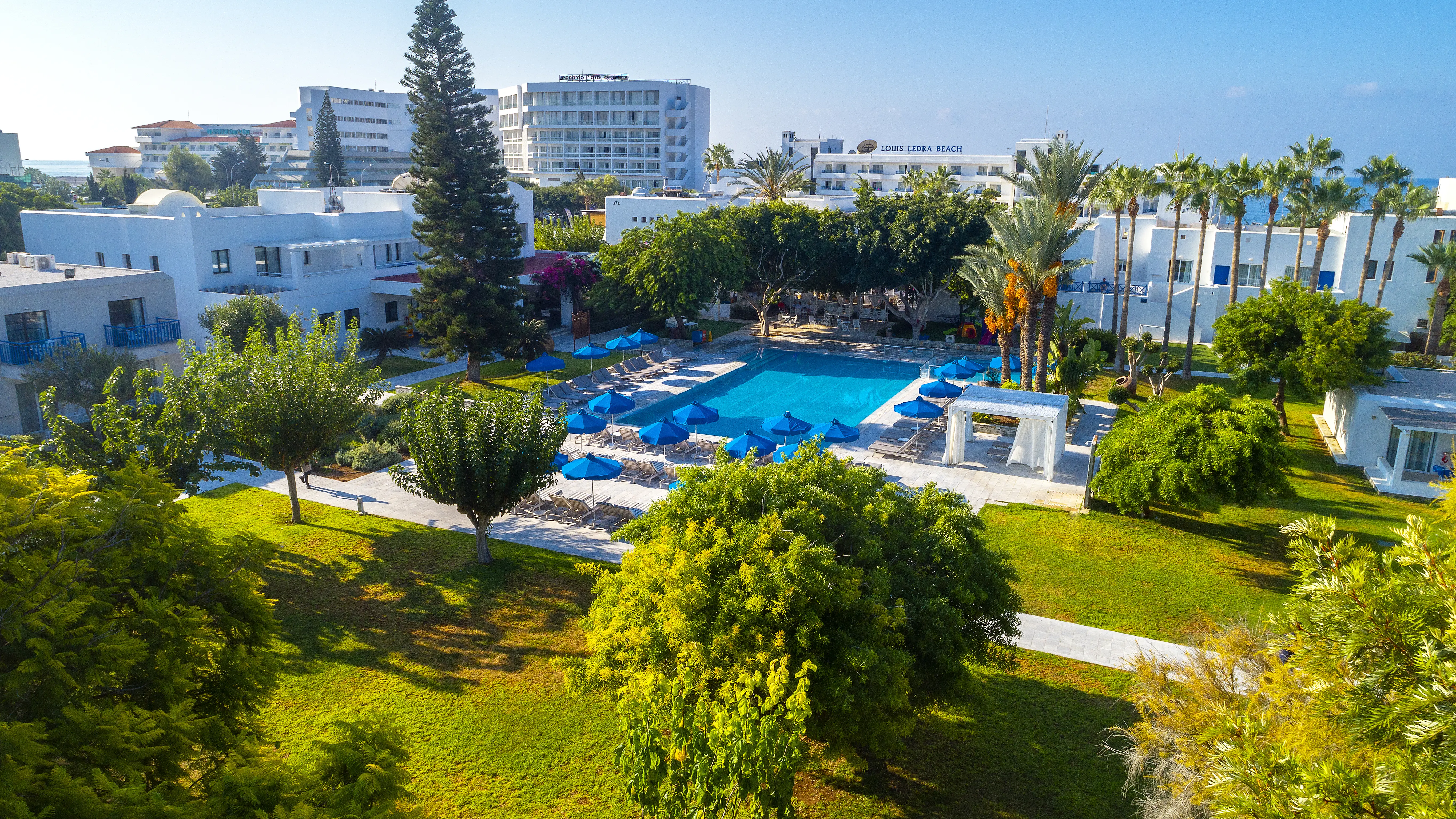 Aliathon Aegean er et lækkert lejlighedshotel med studios og 2-værelseslejligheder som har en dejlig placering tæt på Pafos nye bydel og med mange skønne faciliteter for par og familier.