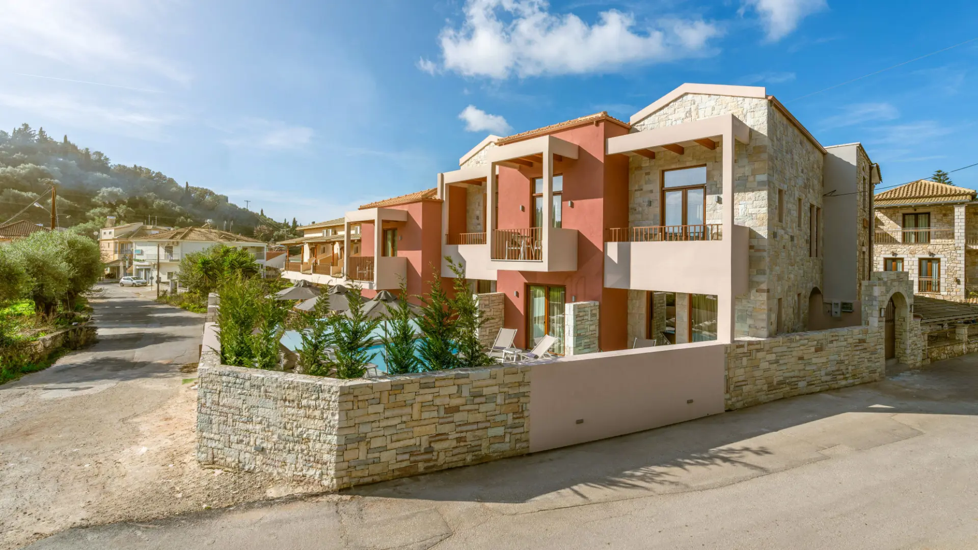 Aria Suites er et nyopført hotel bygget i traditionel stil og består af 7 lejligheder i lækre materialer. Flere lejligheder har enten privat pool eller swim-up pool. Øvrige værelser har ikke adgang til pool, men i nærheden af hotellet findes flere smukke bugter med idylliske strande. Sivotas havnepromenade ligger ligeledes få minutters gang fra hotellet.