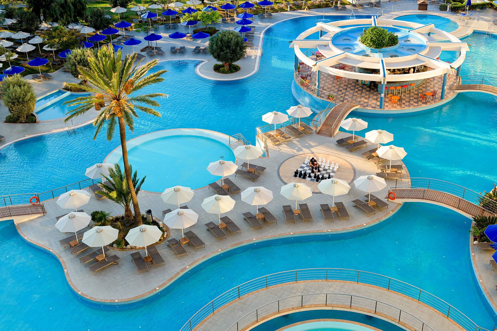 Velkommen til et skønt hotel med en god placering tæt på byen og stranden og med et væld af skønne faciliteter for både voksne og børn. Hotellet har to store, flotte swimmingpools, hvoraf den ene har vandrutsjebaner. Skal ferien være lidt udover det sædvanlige, er der mulighed for værelser med swim-up pool eller penthouse værelser med egen jacuzzi.