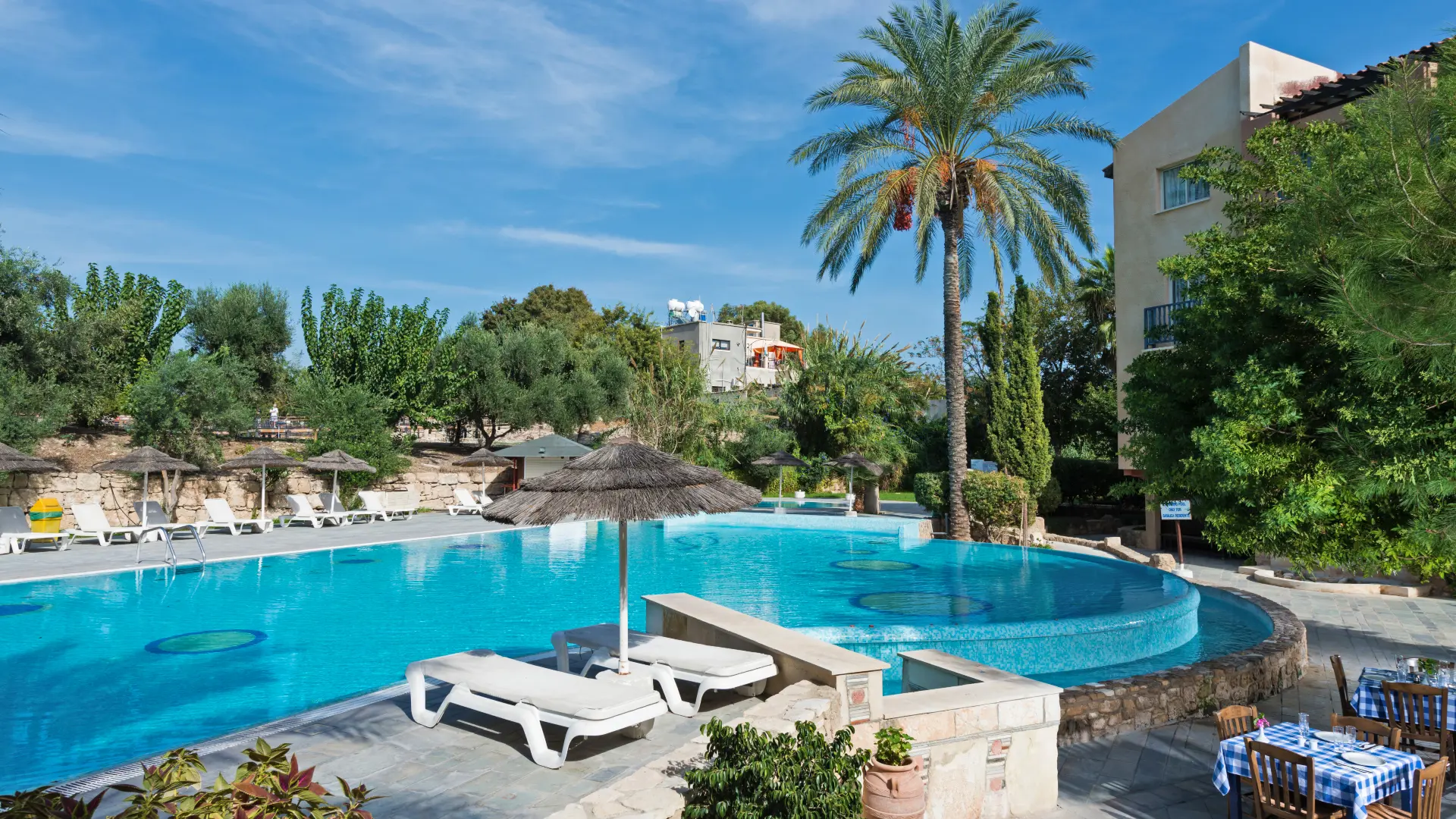 Dejligt lejlighedshotel beliggende i hjertet af Kato Pafos tæt på det livlige havneområde med et stort udvalg af restauranter, barer og butikker. Basilica Garden byder på en flot solterrasse med en indbydende swimmingpool og mindre børnepool. Området omkring poolen er det naturlige samlingssted for hotellets gæster, hér oser det af feriestemning. Nyd en lille forfriskning fra den tilhørende poolbar, der også serverer lette retter.