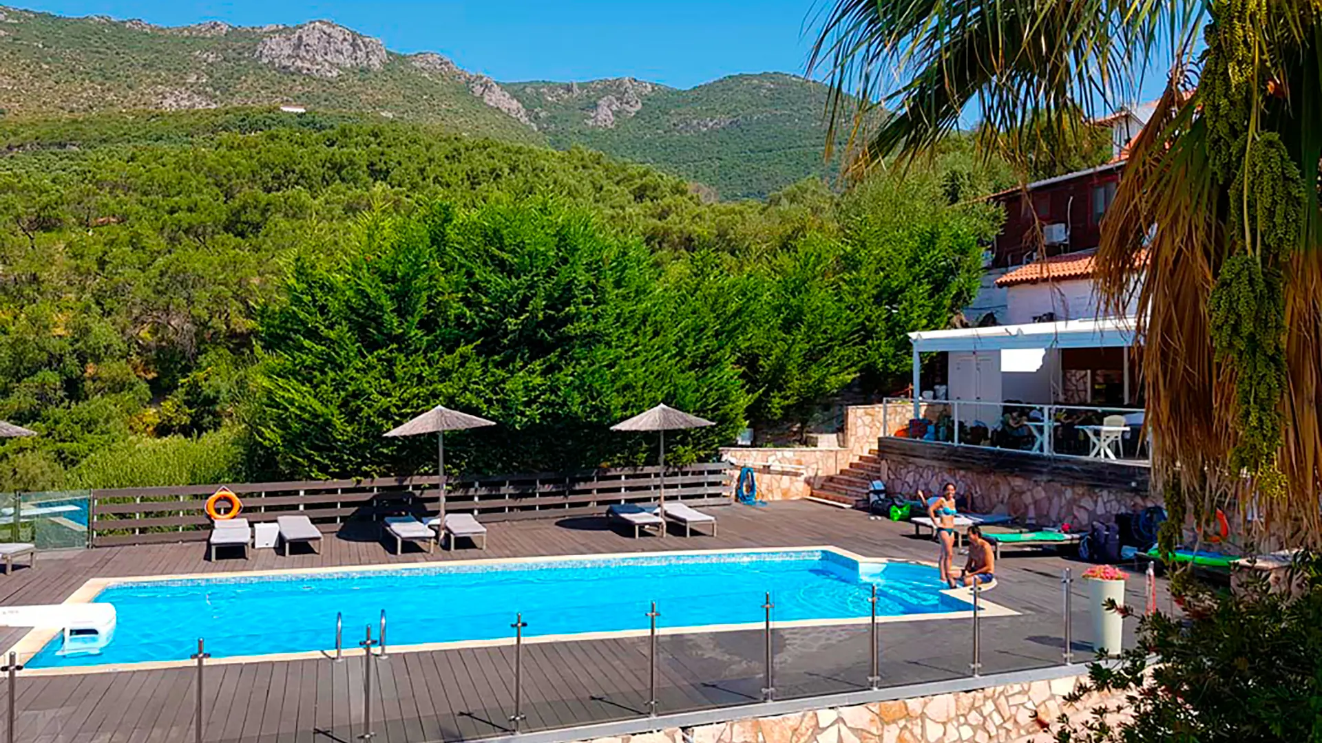 Hyggeligt lejlighedshotel på bjergsiden med udsigt over Valtos-bugten og tæt på Valtos-stranden. Hotellet har en solterrasse med pool, bar og liggestole. Kun 10 minutters gang til Pargas smukke havnepromenade. Perfekt til strandferie og lokal udforskning.